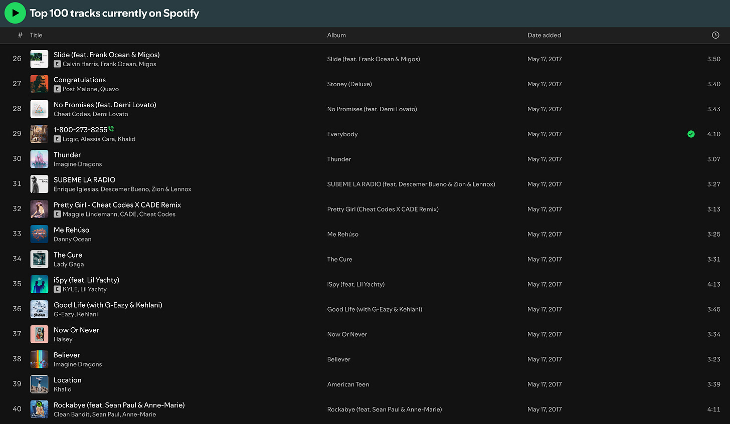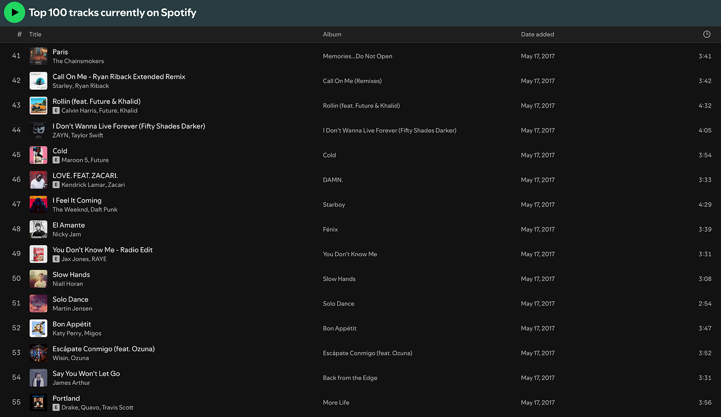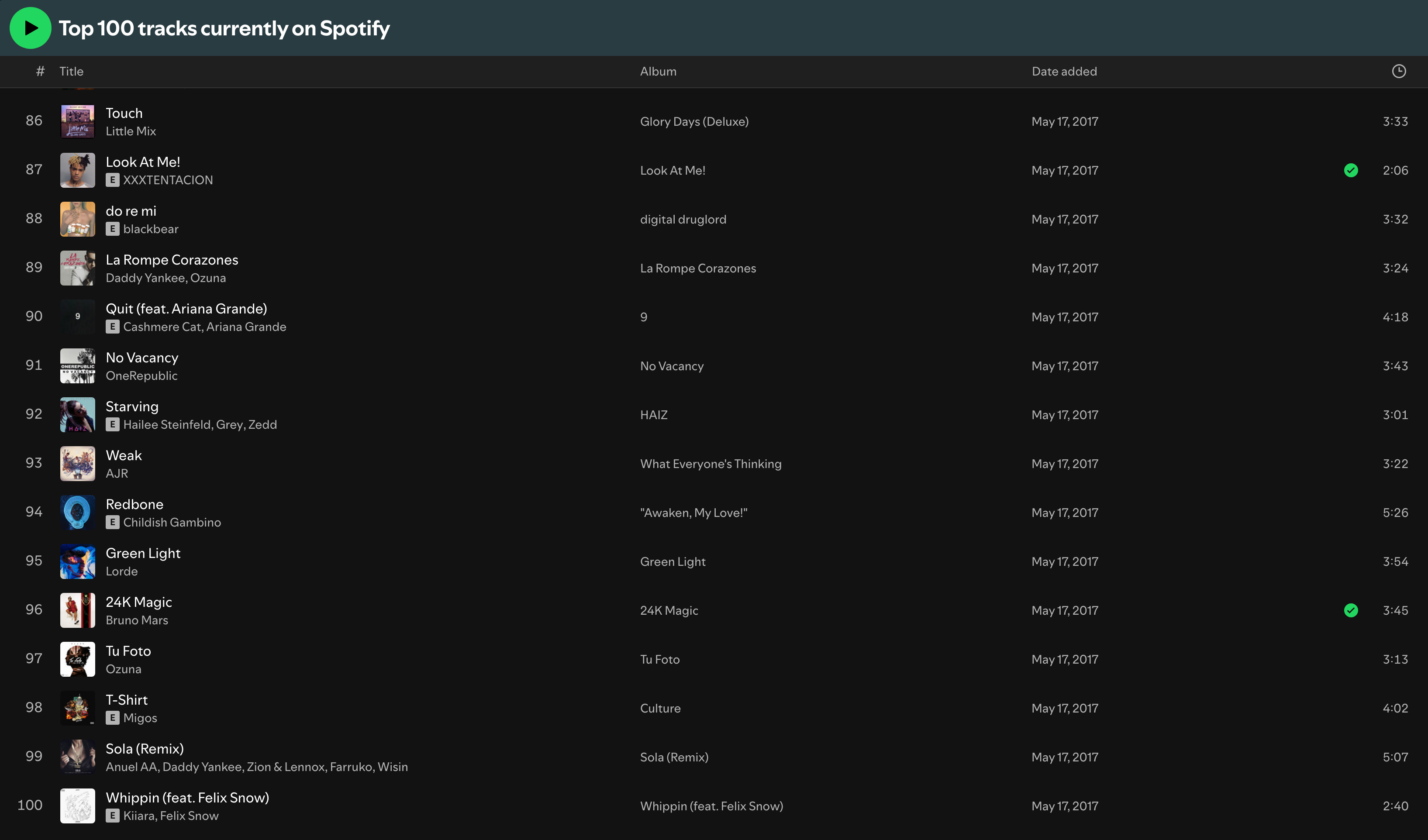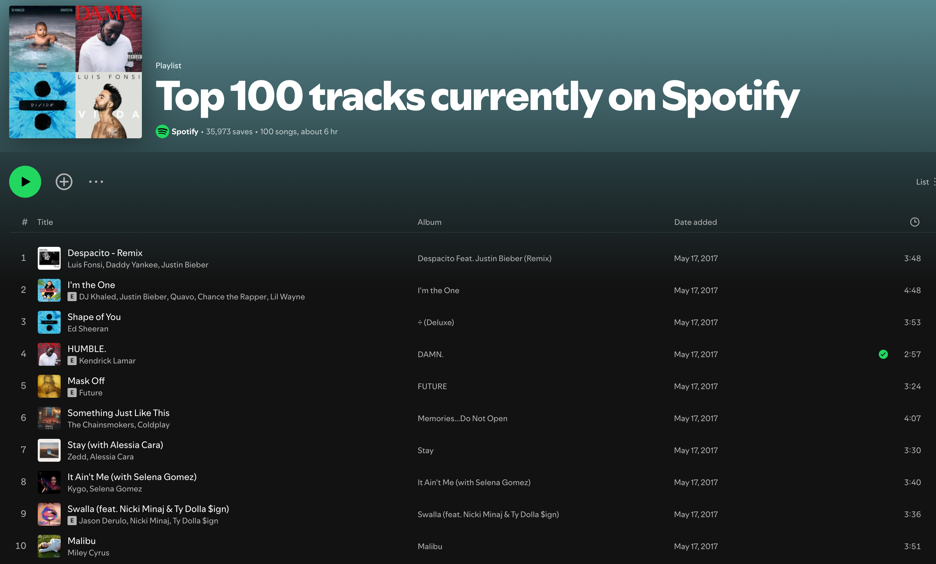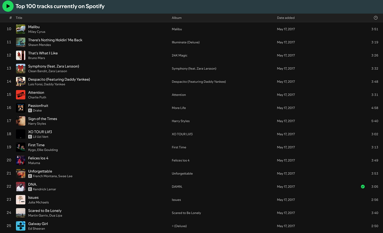 STREAMING PLAYLIST: Top 100 Tracks currently on Spotify As of March 1, 2025American Music + MediaMar 02, 20251ShareThanks for reading American Music + Media! Subscribe for free to receive new posts and support my work.SubscribePreviousNext