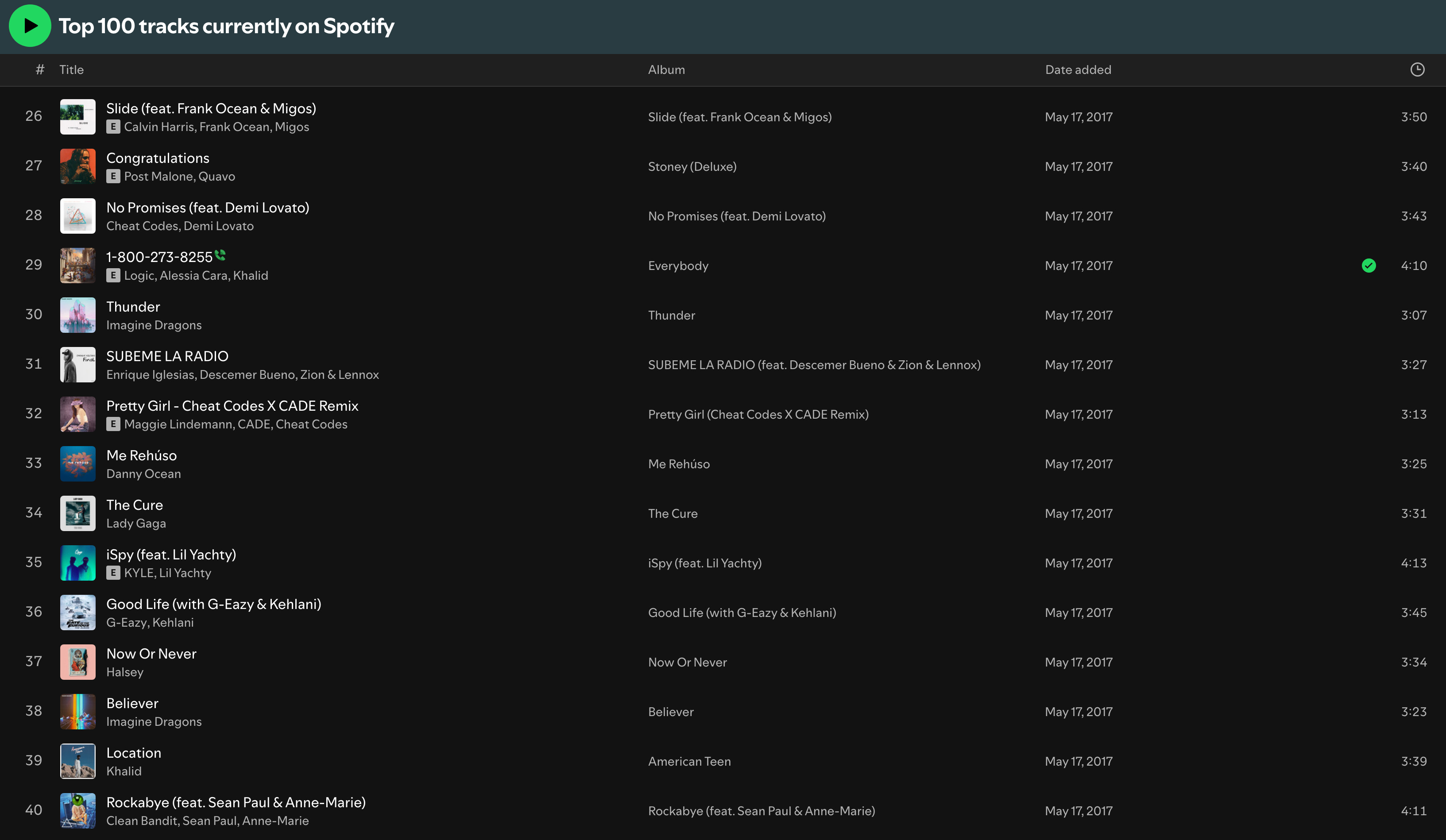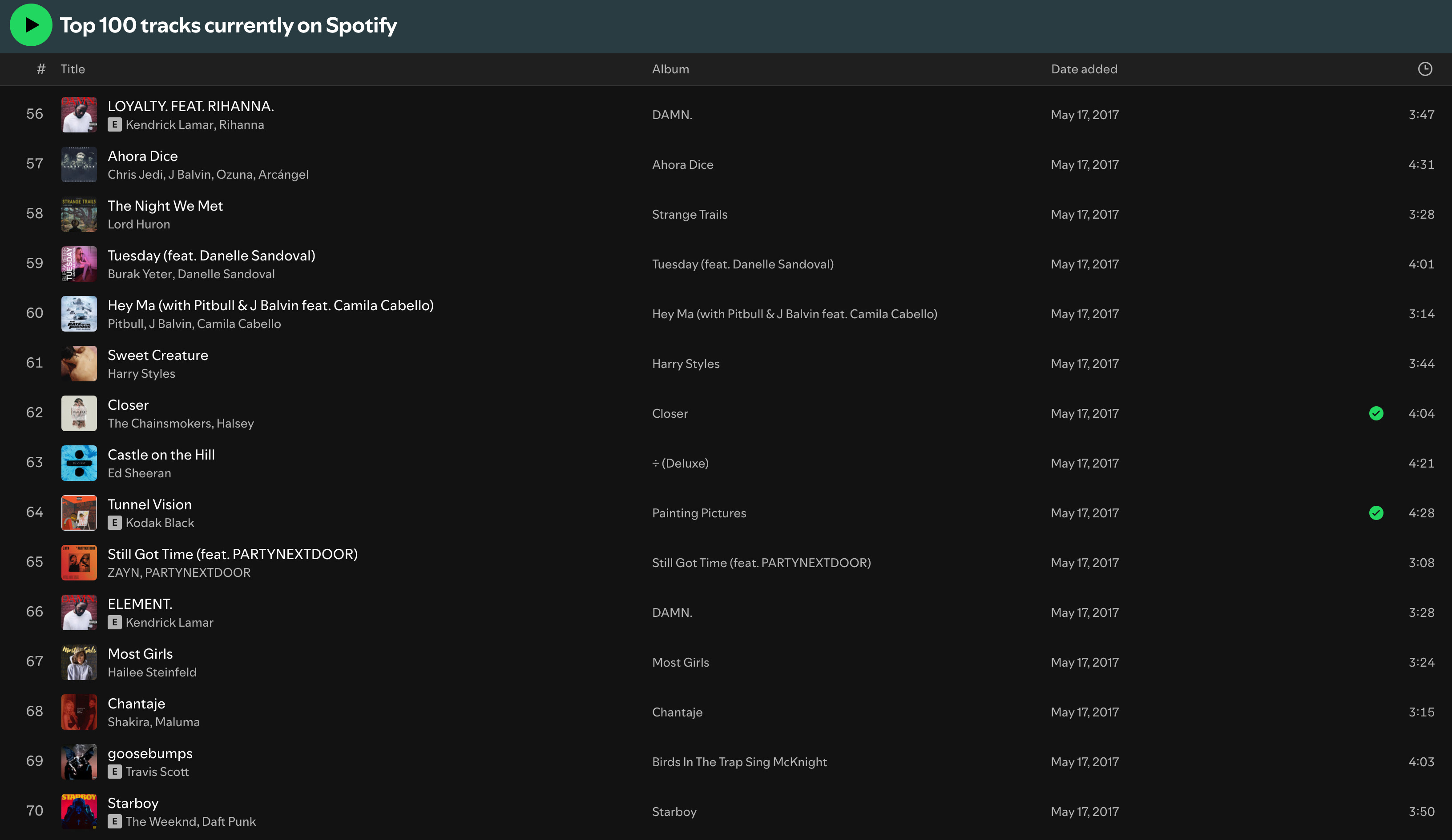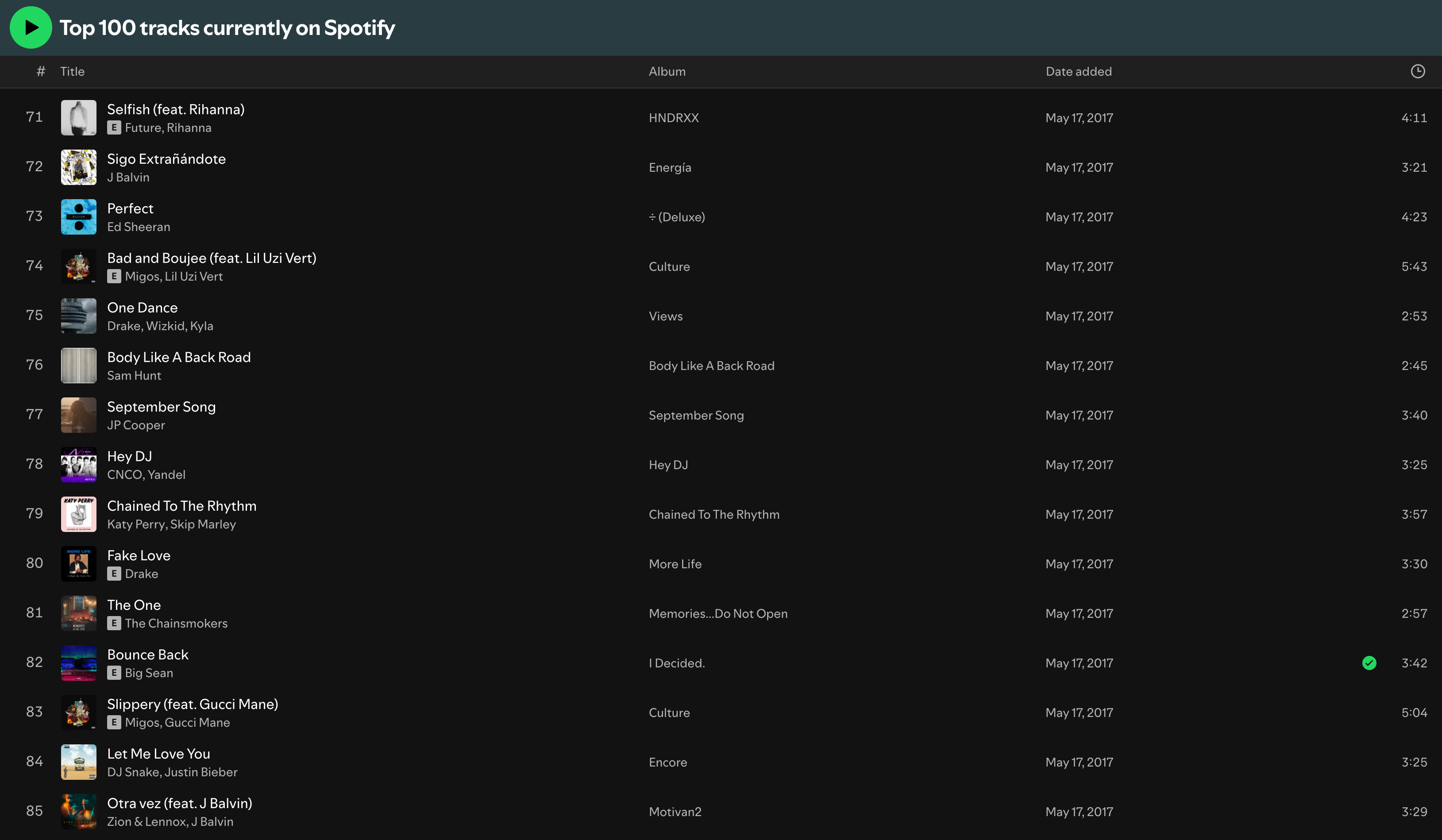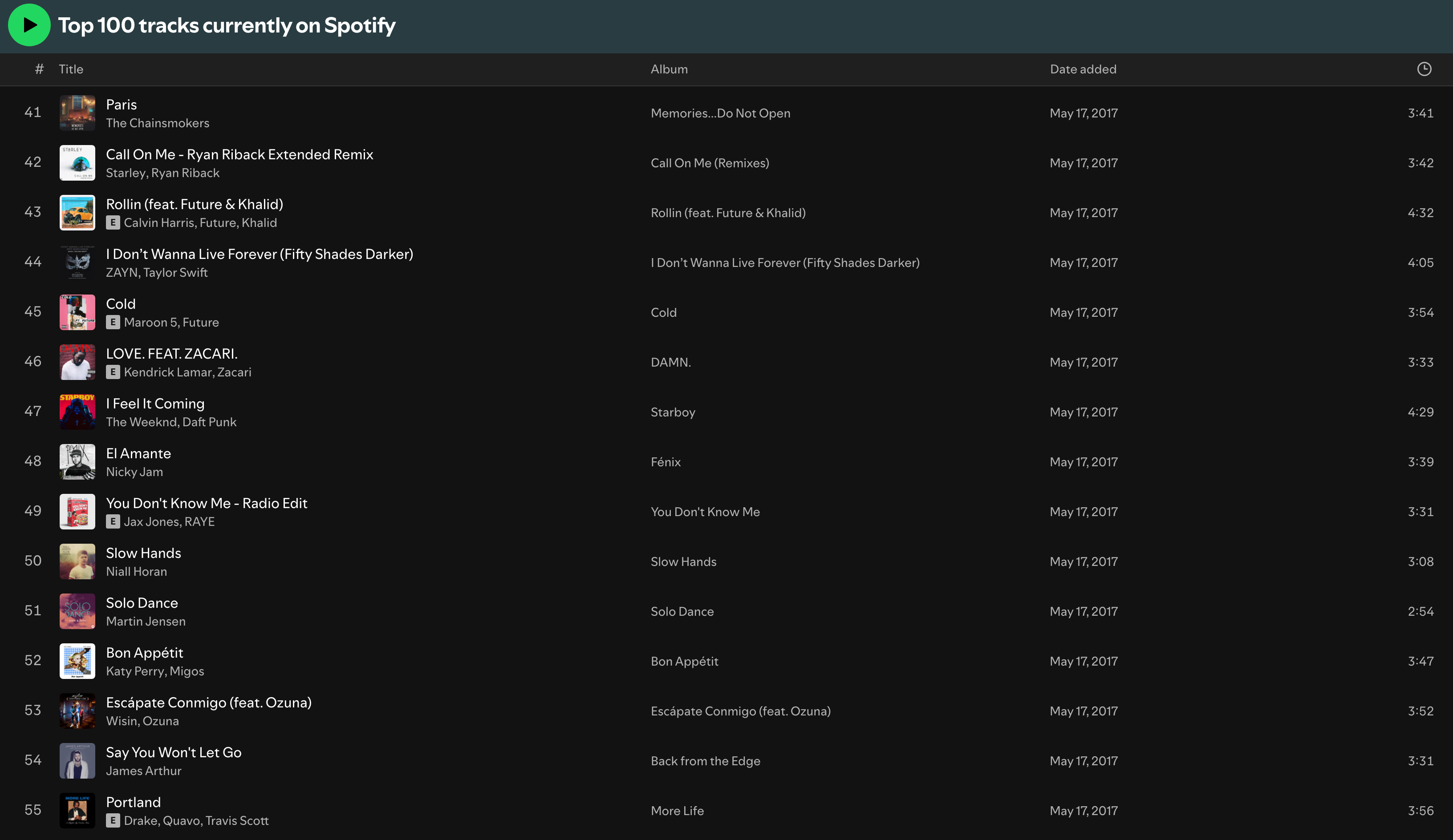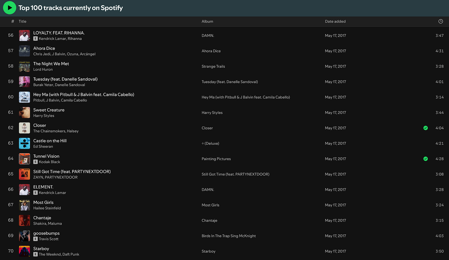 STREAMING PLAYLIST: Top 100 Tracks currently on Spotify As of March 1, 2025American Music + MediaMar 02, 20251ShareThanks for reading American Music + Media! Subscribe for free to receive new posts and support my work.SubscribePreviousNext